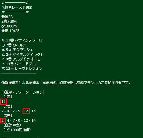 28日(土)新潟2Rで無料情報3連単的中!