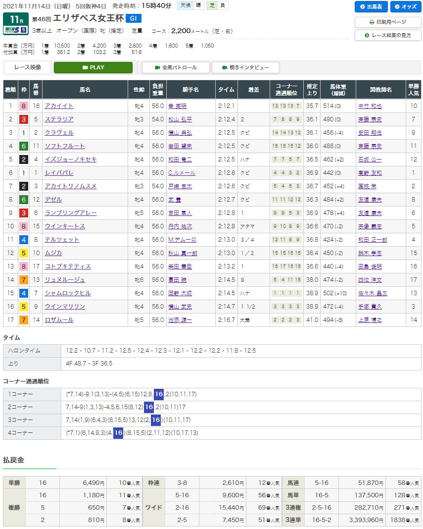 レース結果は説明するまでもありませんが下記の通りとなります。