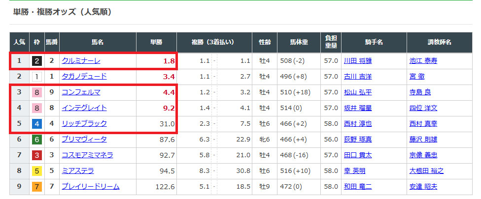 上位人気は集中していて、5番人気以降はかなりオッズがつくようなのでどうにか④が馬券に絡んでくれることを期待したいと思います!