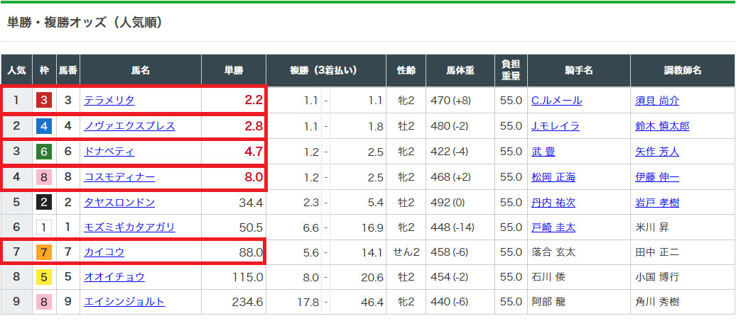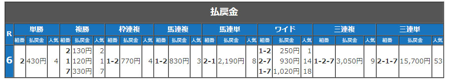 上位人気馬が中心ですが7番人気馬が絡めば美味しい配当がゲットできそうです!