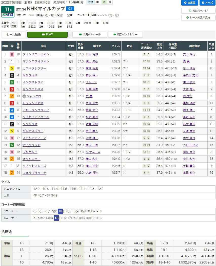 先ずは昨日行われた注目のG1NHKマイルCから検証します。