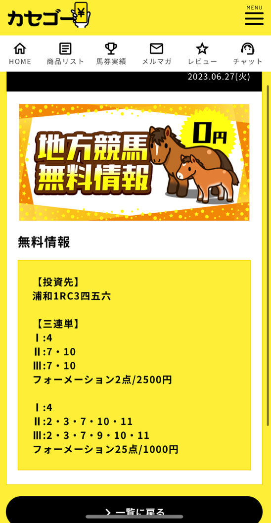 中央競馬だけでなく地方競馬の予想も出しているようでさっそく地方競馬の予想が出ていたので検証してみることにしました。