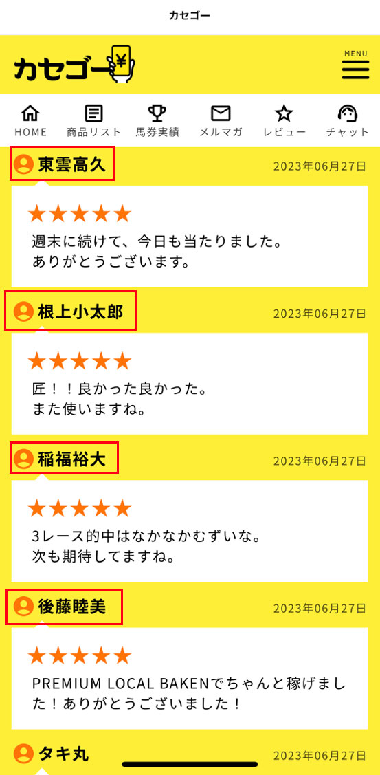 今回、【カセゴー】を検証してみましたが、馬券代も高く外れてしまったのとレビューに怪しい口コミが多く、一旦怪しい悪徳サイトと判定させていただきます。