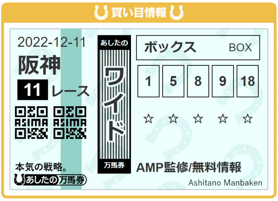 【あしたの万馬券】の阪神ジュベナイルフィリーズ無料予想の買い目がコチラ↓