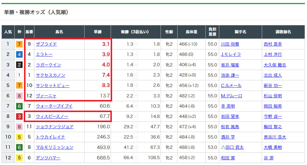 1.2番人気馬が飛んで美味しい配当だっただけに残念です。