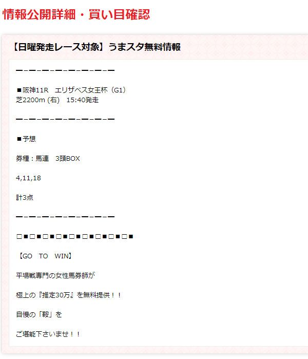 今回ご紹介しているサイトの11月度メインレース(11R)的中は1度だけ、しかも6380円と不本意な結果、これから続くG1戦線に役立てない事が想定できます。