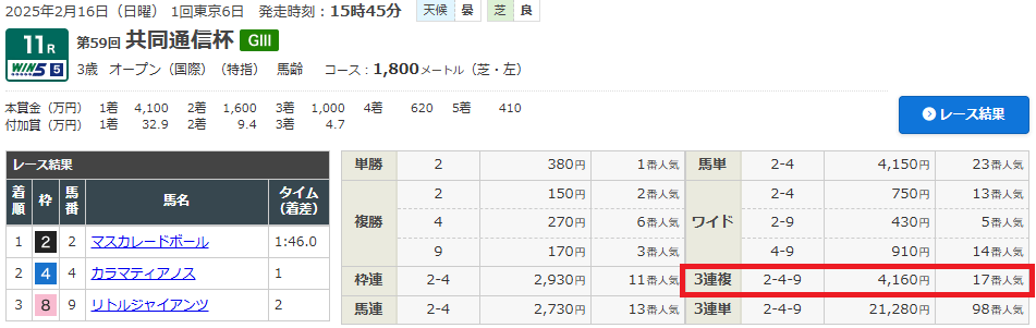 【LINE限定】管理人田中ガチ予想が共同通信杯(G3)的中!