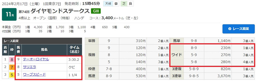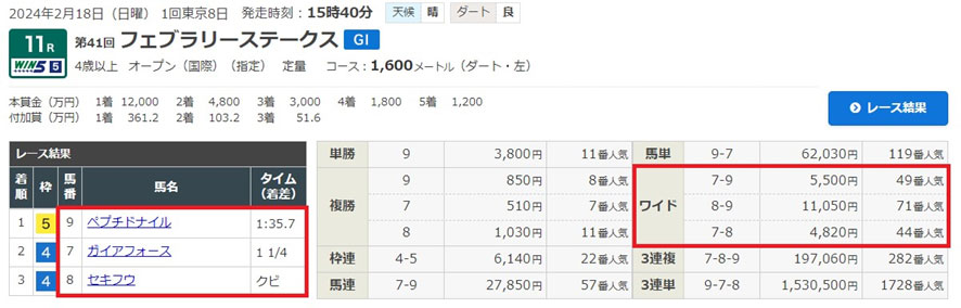 よくあの荒れたフェブラリーSを当てられましたね、羨ましいです。