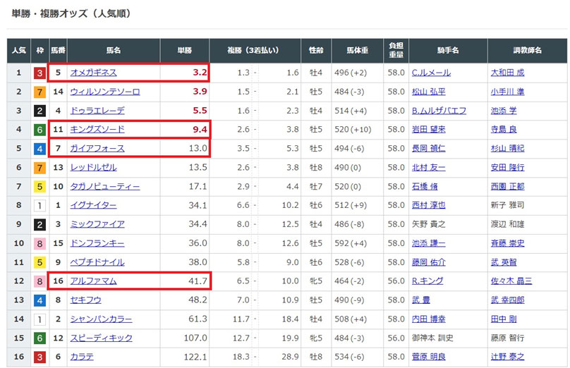 4,5番人気と私の注目の一頭12番人気⑯アルファマムまで買っていて今回も比較的穴狙いの予想になります。