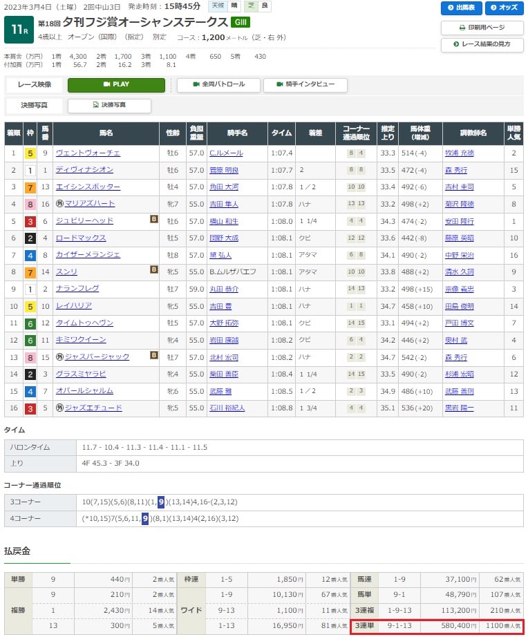 3月5日・中山8レース 4歳以上2勝クラス 芝1600m