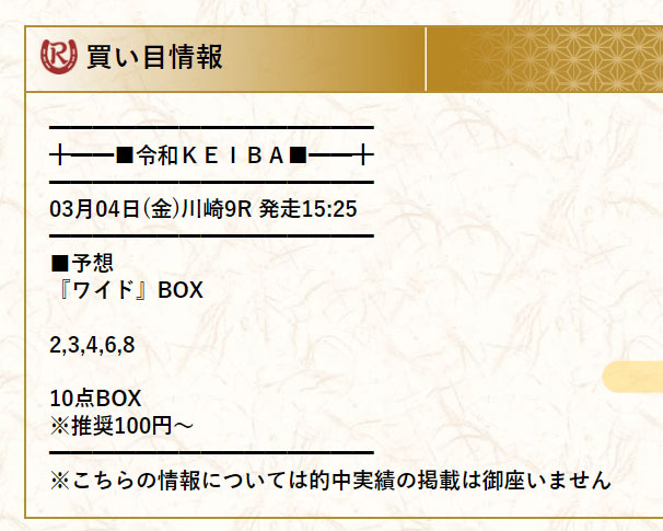 今回検証したのは令和ケイバという過去にも検証した予想サイトの「無料情報」と「有料情報」検証です。