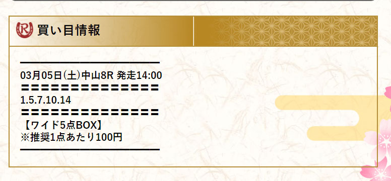 週末限定の週賞攻略に繋がる印・推奨理由・買い目をLINEで配信します。