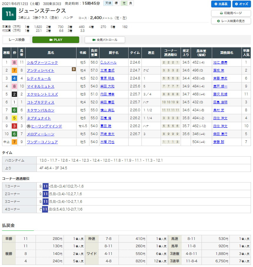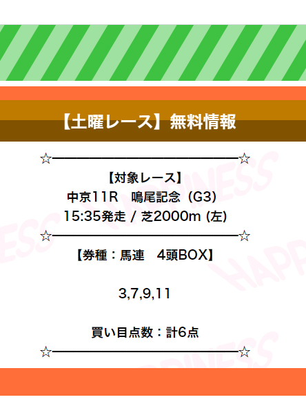 この日は重賞がなく、どこのレースを提供するのかと確認したら東京11Rメイン競争を選択。