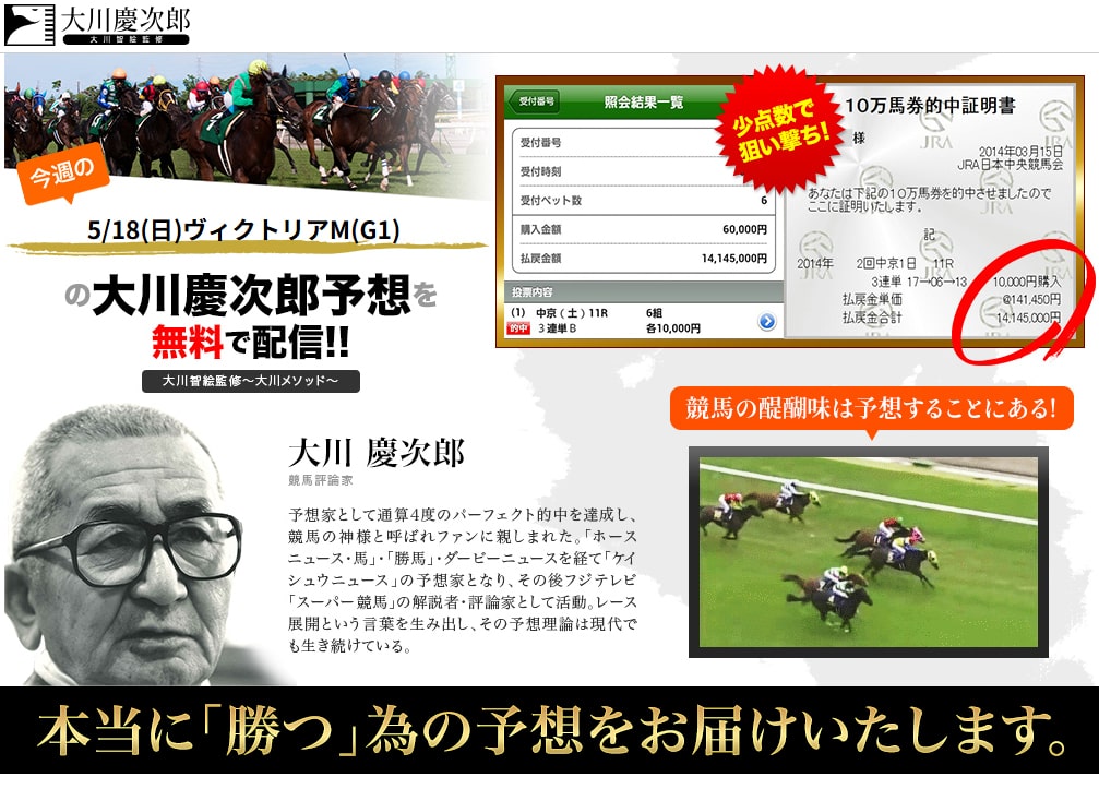 そのサイトが『大川慶次郎~パーフェクト馬券メソッド~』です!