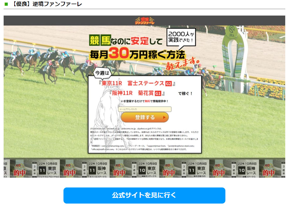 最近の重賞は荒れに荒れていていますが、そんな中でも当たっているサイトを発見しました。