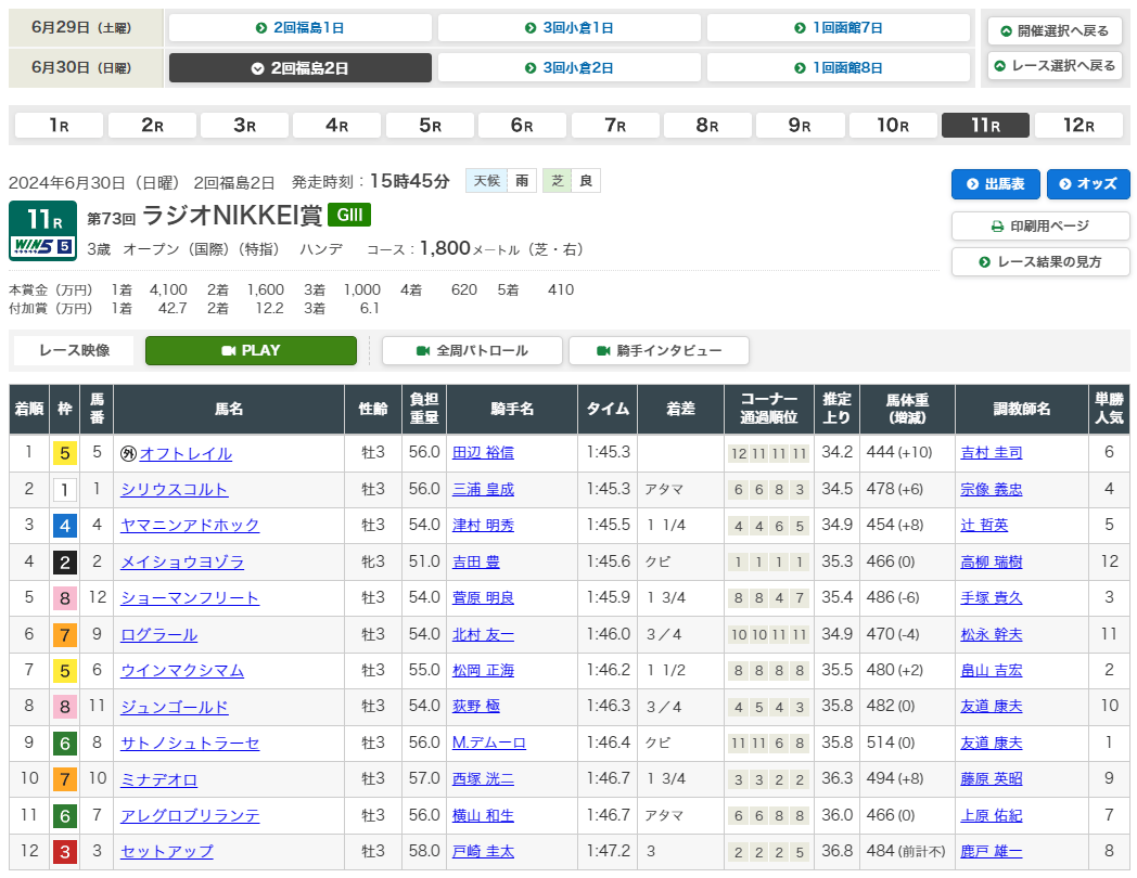 6月30日・福島11レース ラジオNIKKEI賞(GⅢ) 3歳オープン 芝1800m