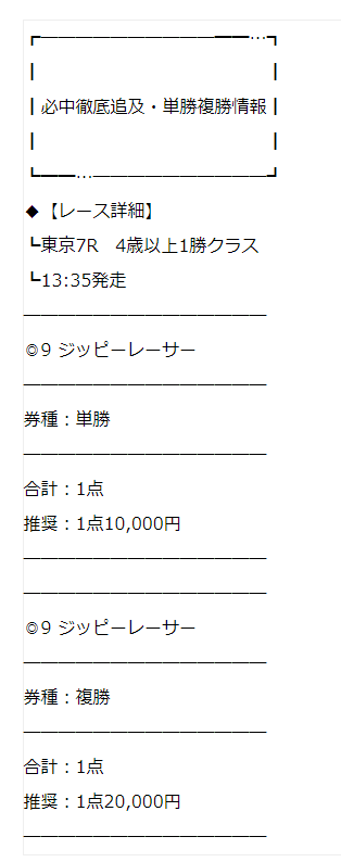 ここの予想は人気になる馬の単複ですけど、大敗するのが目立ちます。 当たってもトリガミになるだろう予想で、単勝当たっても大して儲かりません。 全く信用できないサイトです。