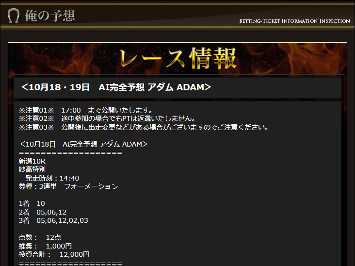 12月一発目の無料予想でも3連単万馬券当ててましたよ、結構参考にしてるサイトです。