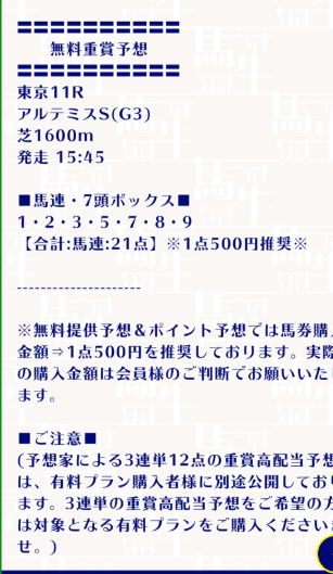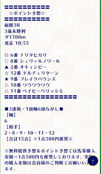 こんなポイント情報で外すくらいなら万馬券ホースのポイント情報参加してたかった、、、