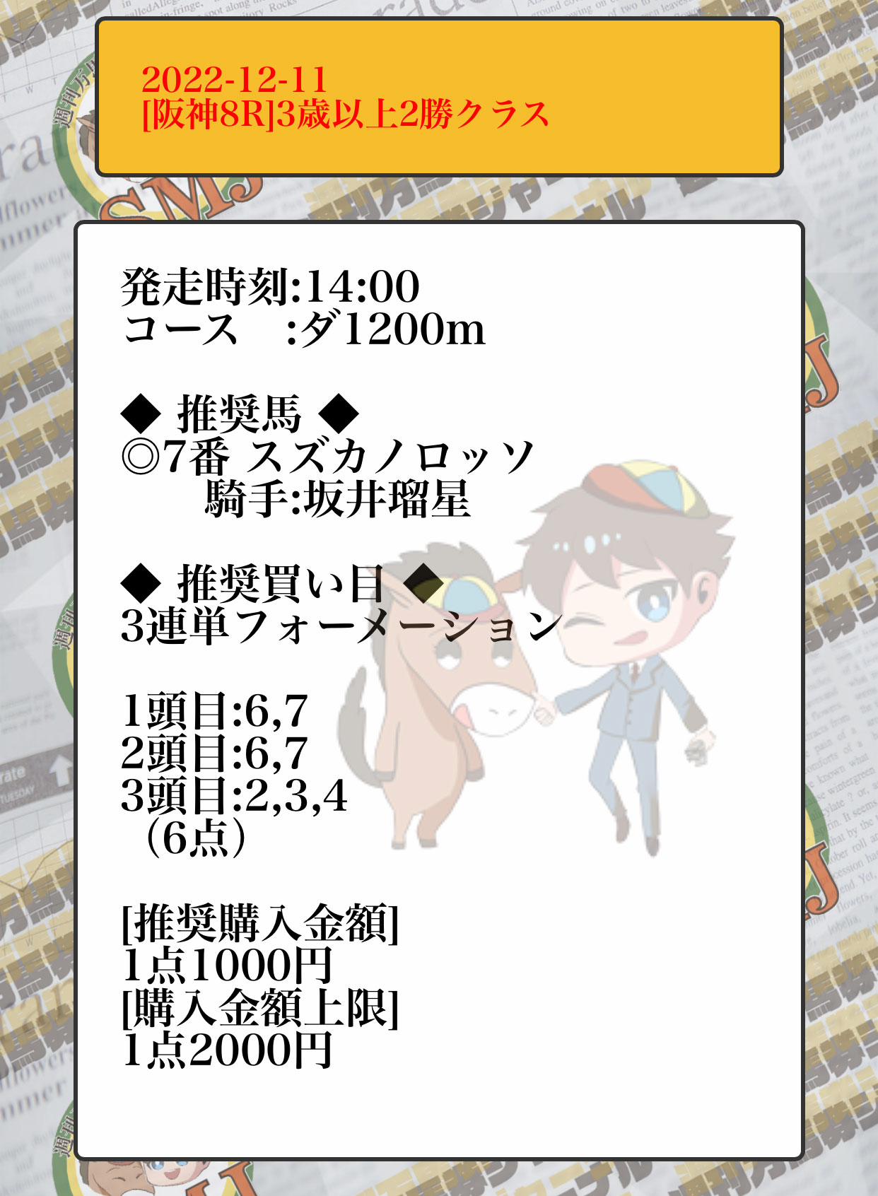 12000円が20万はデカい❗今日坂井乗れてるからメインも頼むっ