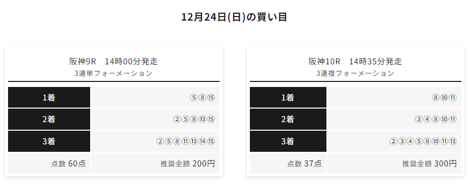 この予想で4-12-6で的中で130,050円と1-3-11で的中で184,260円のそれぞれ的中いただきました!
