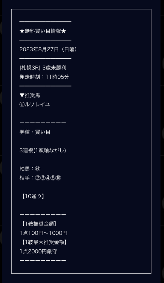 8月の無料予想全滅でしょここ