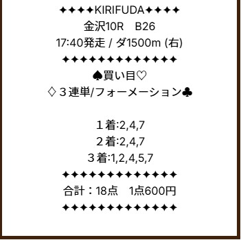 1068.7倍地方競馬で当たりました!これが買い目画像です
